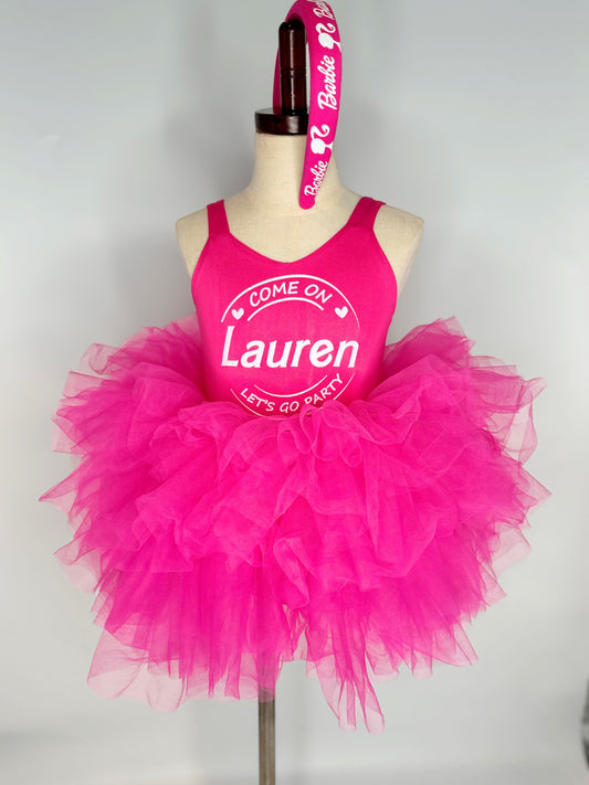 Barbie Girl with head soft tulle light pink tutu leotard one piece
