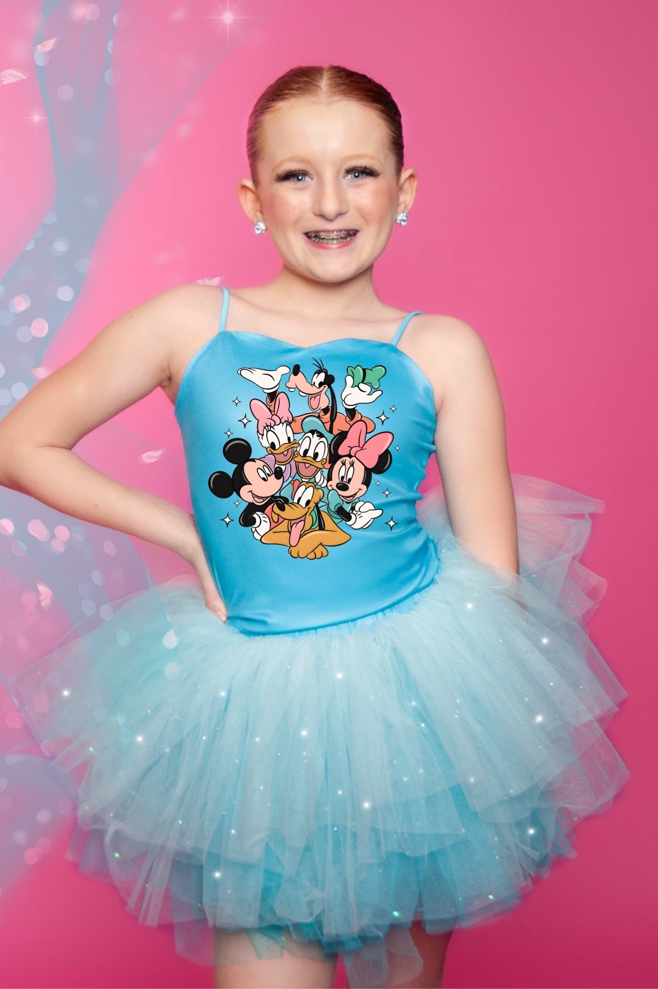 Mickey and friends two piece teal bamboo glitter soft tulle set
