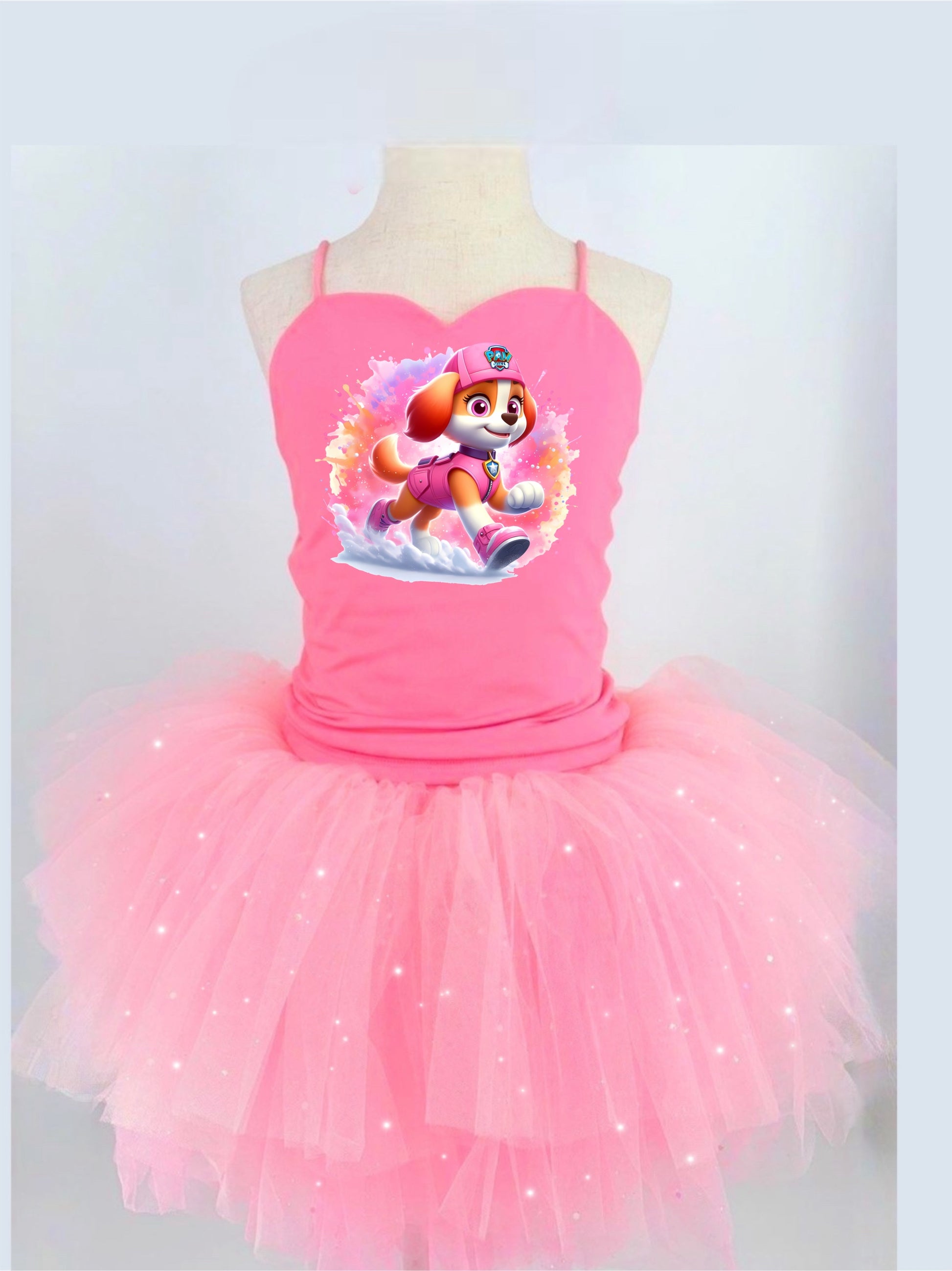 Paw patrol girl two piece bamboo glitter soft tulle teal or pink