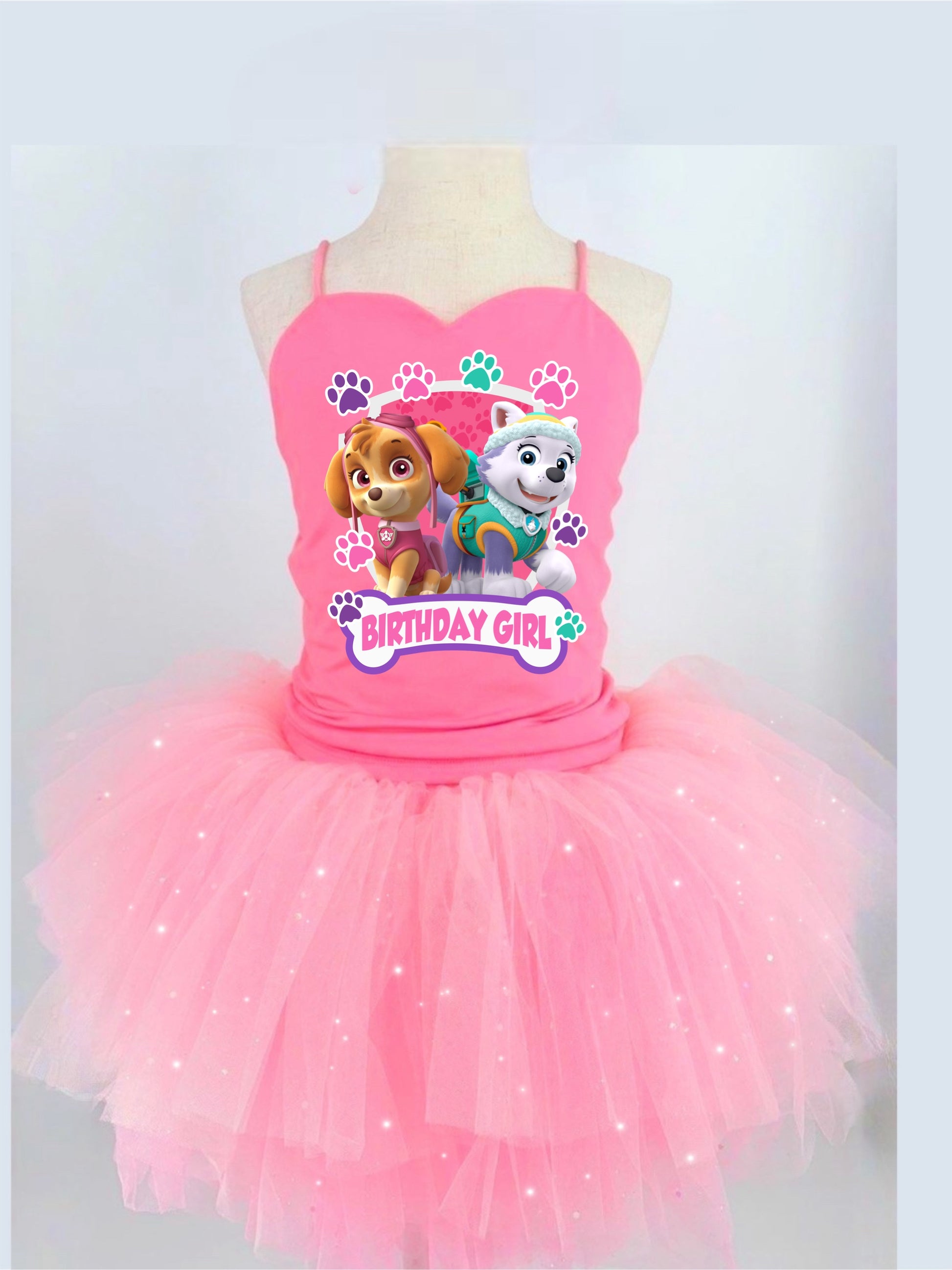 Paw patrol birthday two piece bamboo glitter soft tulle teal or pink