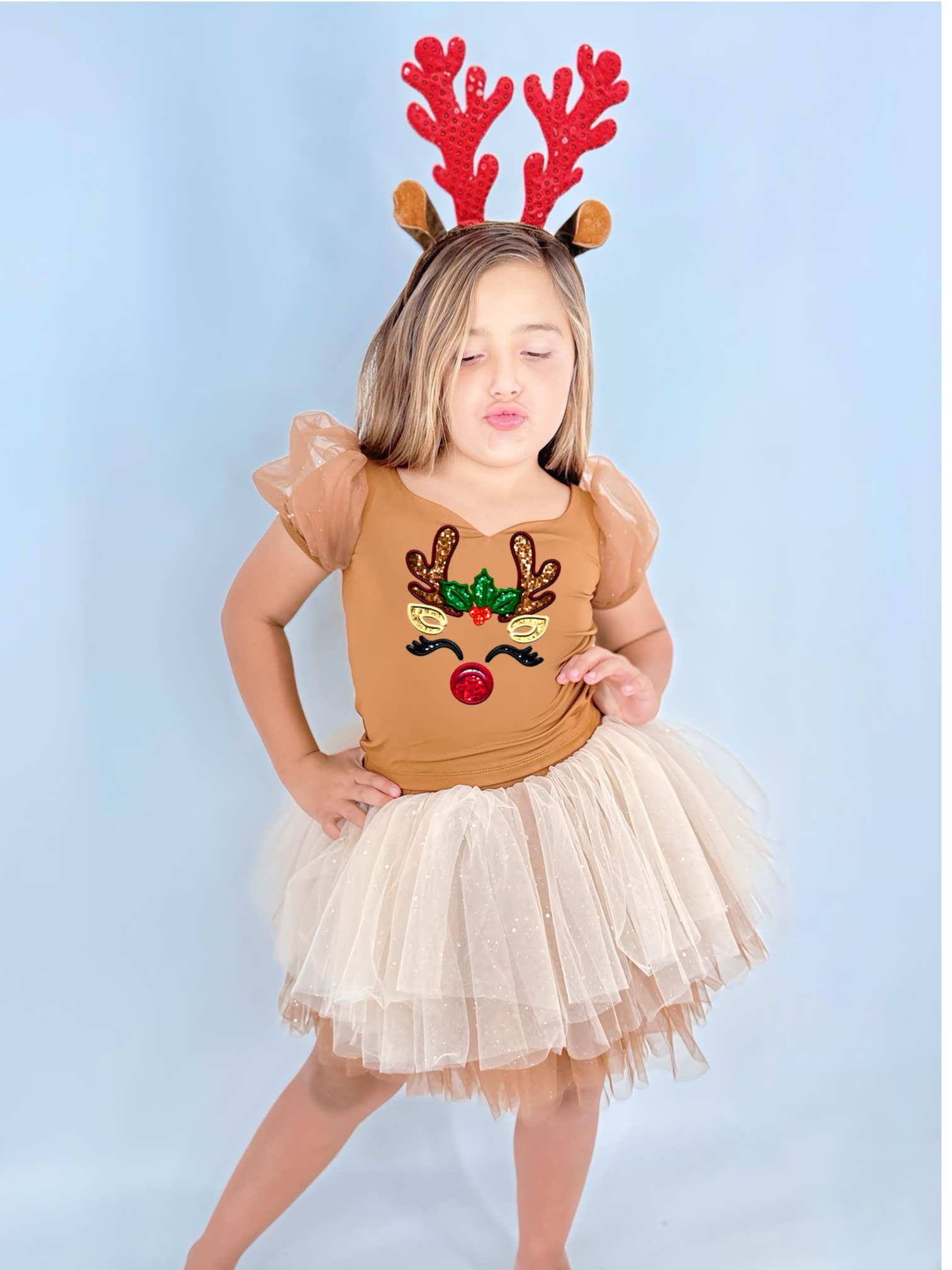 Reindeer on brown two piece tutu set choose your top solid or reindeer print
