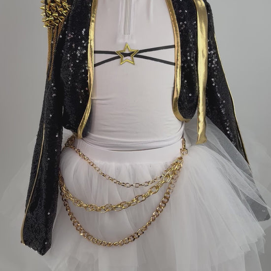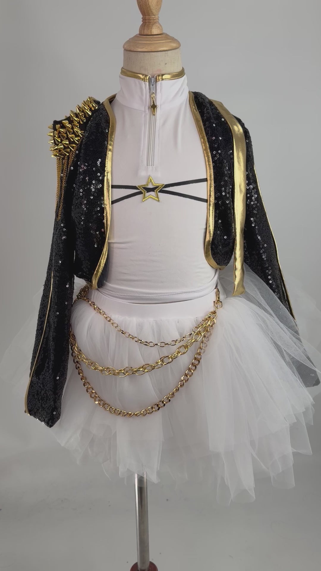 A voluminous tutu skirt crafted from multiple layers of high-quality, soft tulle with printed glitter (no shedding). The elastic waistband ensures a comfortable fit, and soft shorts are included underneath for full coverage and ease of movement.