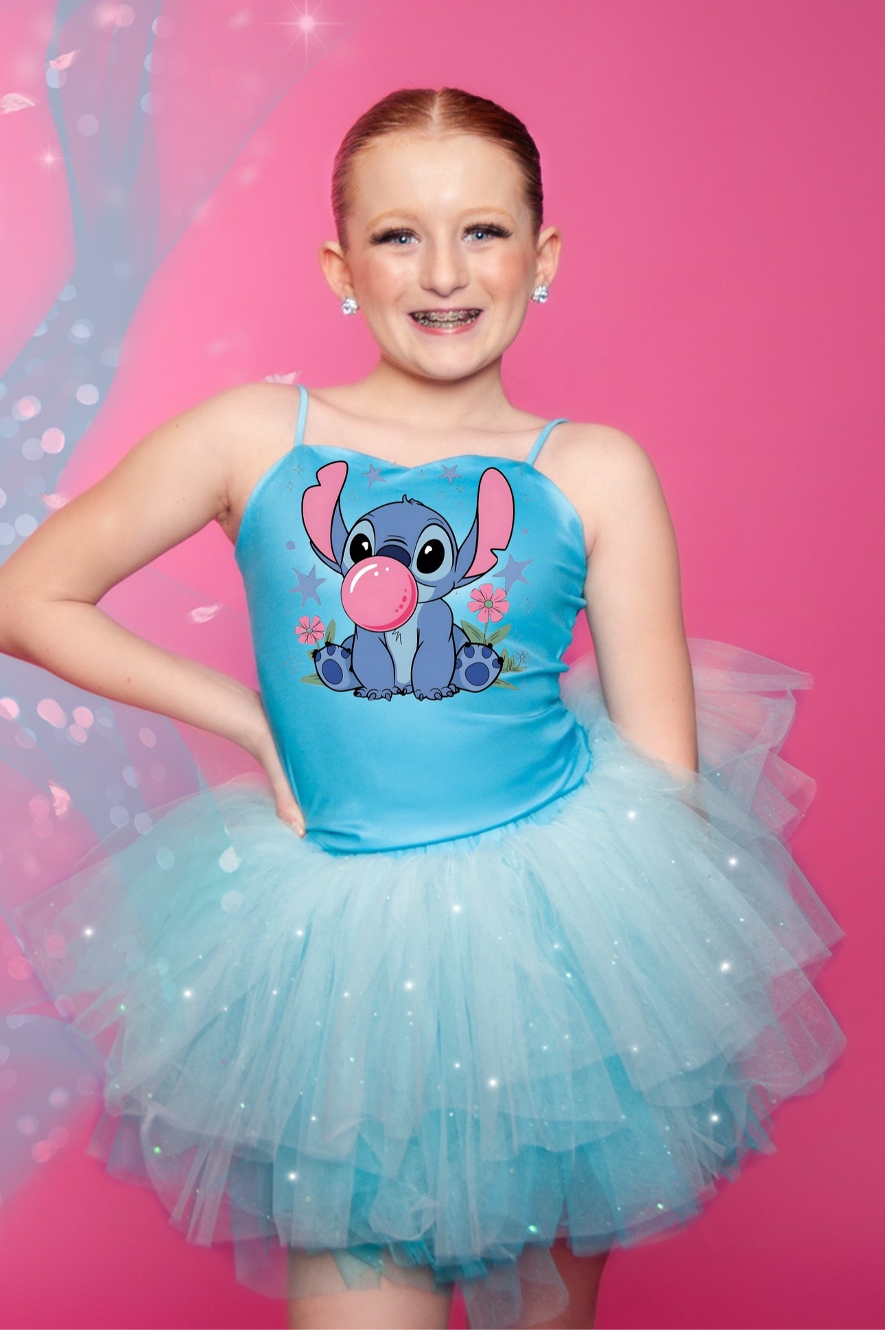Stitch bubble gum two piece bamboo glitter soft tulle set